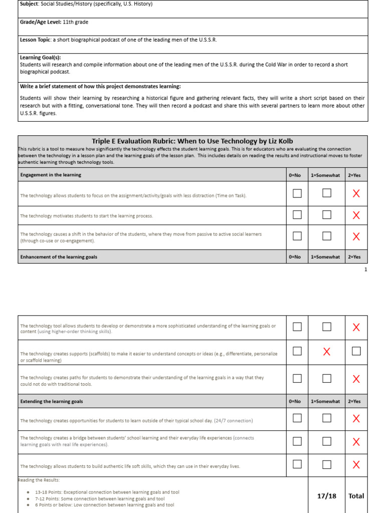Modified from Liz Kolb’s original TripleE Framework Lesson Planning Template