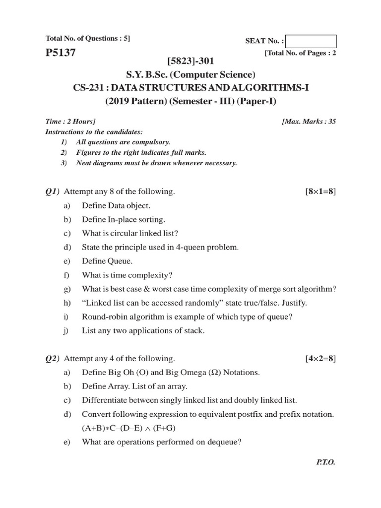 CS-231 : DATA STRUCTURES AND ALGORITHMS-I