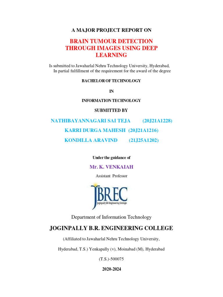 Is submitted to Jawaharlal Nehru Technology University, Hyderabad,