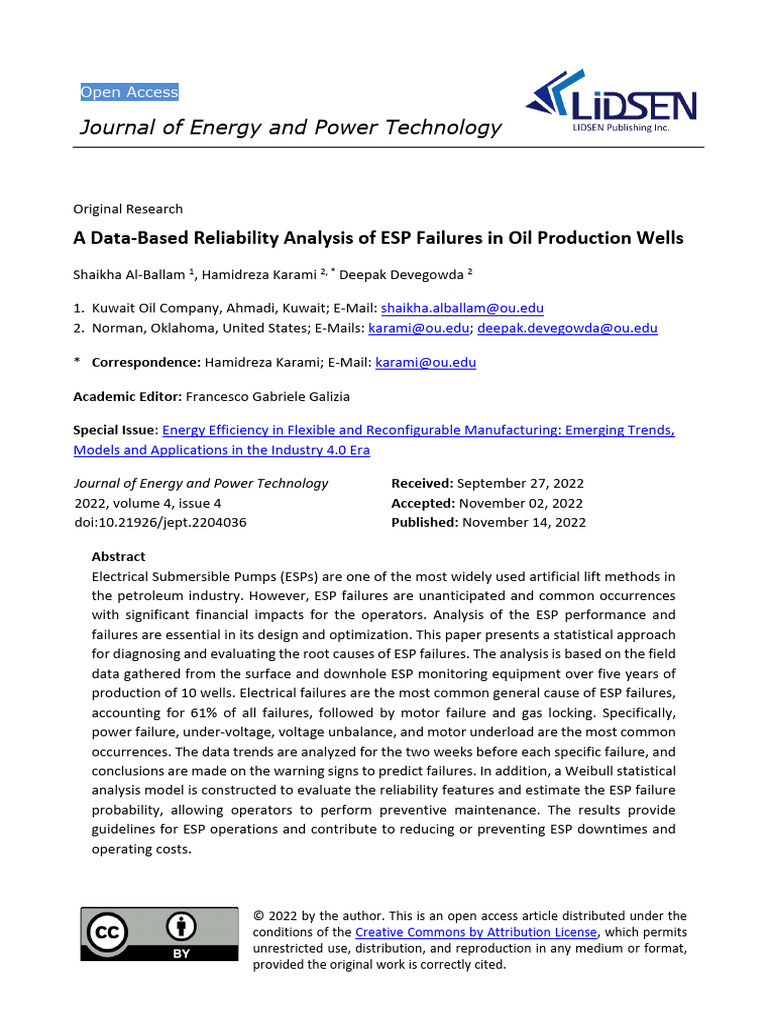 Electrical Submersible Pumps (ESPs) are one of the most widely used artificial lift methods in