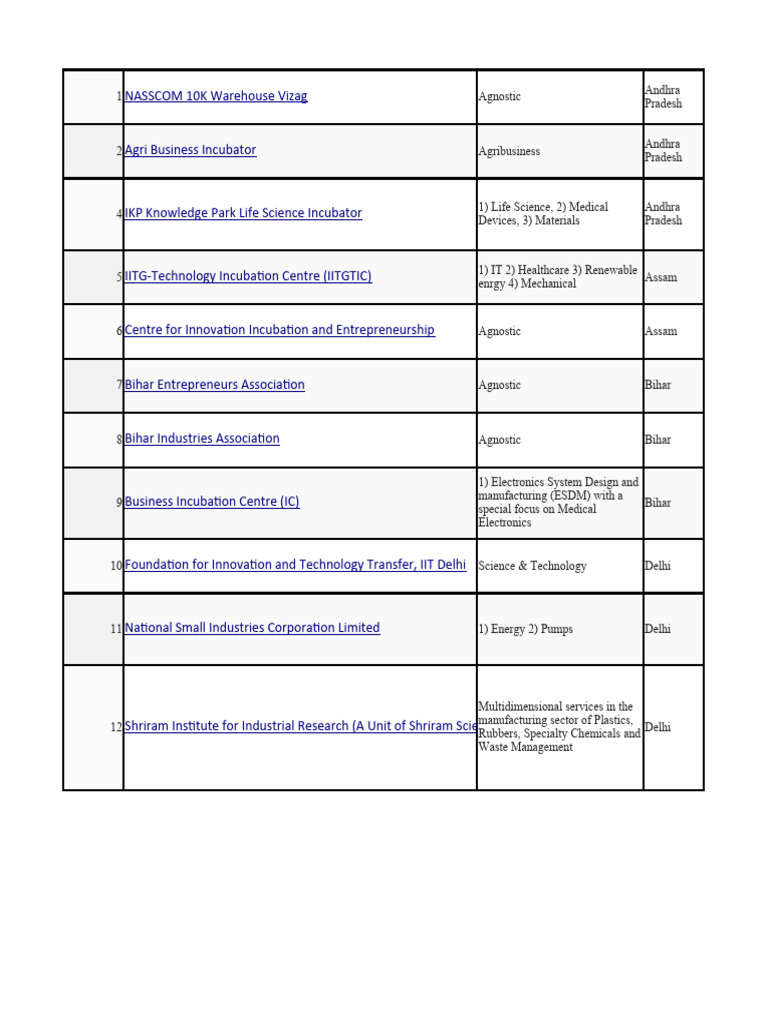 33 MSME Business Incubator. 1) IT 2) Biotech Karnataka