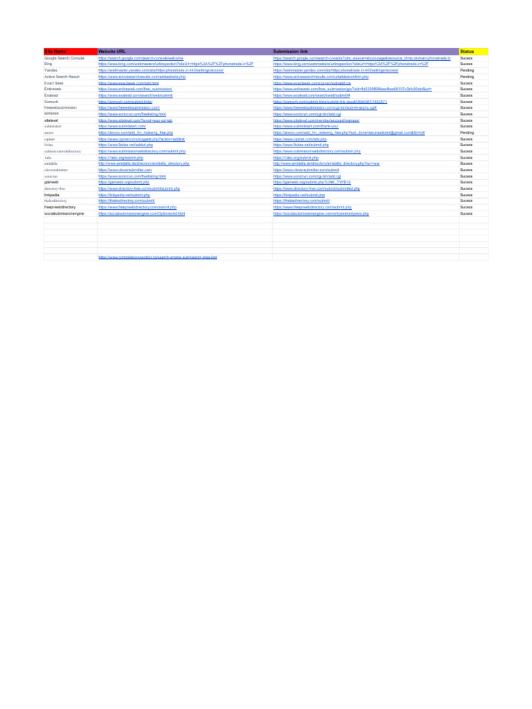 Site Name Website URL Submission link Status
