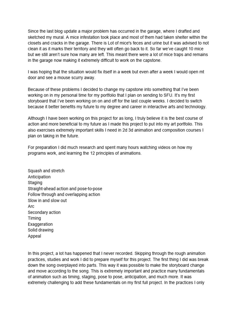In this project, a lot has happened that I never recorded. Skipping through the rough animation
