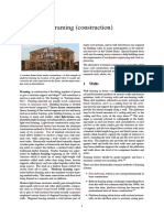 The bottom of the sill-plate is raised a minimum 6 inches above the finished grade by the foundation. This prevents the sill-plate from rotting as well as providing a termite barrier. The floors, walls and roof of a framed structure are created by assembling (using nails) consistently sized framing elements of dimensional lumber (24, 26, etc.) at regular spacings (12, 16, and 24 on center), forming stud-bays (wall) or joist-bays (floor). The floors, walls and roof are typically made torsionally stable with the installation of a plywood or composite wood skin referred to as sheathing. Sheathing has very specific nailing requirements (such as size and spacing); these measures allow a known amount of shear force to be resisted by the element. Spacing the framing members properly allows them to align with the edges of standard sheathing. In the past, tongue and groove planks installed diagonally were used as sheathing. Occasionally, wooden or galvanized steel braces are used instead of sheathing. There are also engineered wood panels made for shear and bracing. The floor, or the platform of the name, is made up of joists (usually 26, 28, 210 or 212, depending on the span) that sit on supporting walls, beams or girders. The floor joists are spaced at (12, 16, and 24 on center) and covered with a plywood subfloor. In the past, 1x planks set at 45-degrees to the joists were used for the subfloor. Where the design calls for a framed floor, the resulting platform is where the framer will construct and stand that floors walls (interior and exterior load bearing walls and spacedividing, non-load bearing partitions). Additional framed floors and their walls may then be erected to a general maximum of four in wood framed construction. There will be no framed floor in the case of a single-level structure with a concrete floor known as a slab on grade. Stairs between floors are framed by installing stepped stringers and then placing the horizontal treads and vertical risers. A framed roof is an assembly of rafters and wall-ties supported by the top storys walls. Prefabricated and site-built trussed rafters are also used along with the more common stick framing method. Trusses are engineered to redistribute tension away from wall-tie members and the ceiling members. The roof members are covered with sheathing or strapping to form the roof deck for the finish roofing material. Floor joists can be engineered lumber (trussed, i-beam, etc.), conserving resources with increased rigidity and value. They allow access for runs of plumbing, HVAC, etc. and some forms are pre-manufactured. Platform framing often forms wall sections horizontally on the subfloor prior to erection. The top and bottom plates are end-nailed to each stud with two nails at least 3 1/4 in. (82 mm) in length. Studs are doubled at openings, the jack stud being cut to receive the lintels that are placed and end-nailed through the outer studs.