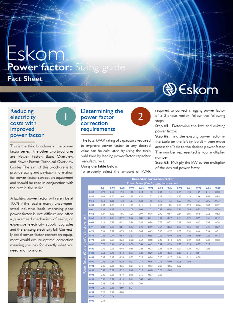 tion on power factor sizing. While Eskom nature (direct, indirect, consequential,