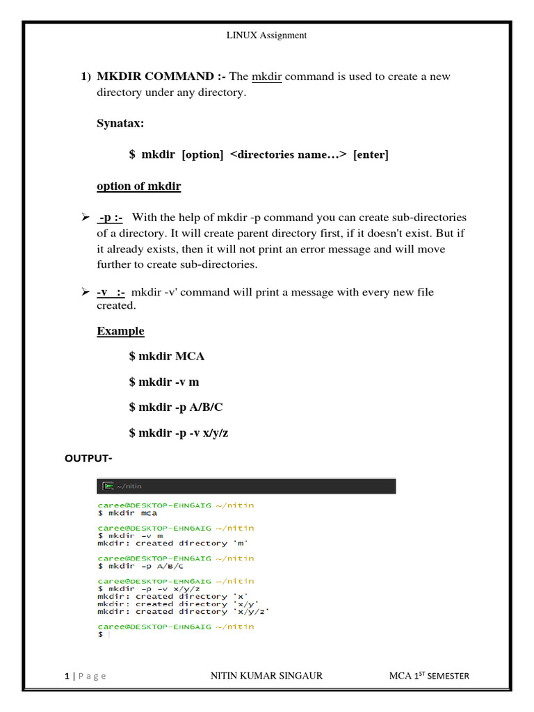 1) MKDIR COMMAND :- The mkdir command is used to create a new