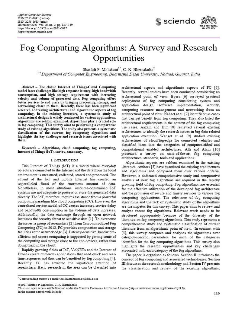the updated data in fog computing,” Future Generation Computer Desai University, Nadiad, Gujarat, India. She has around 10 years of teaching