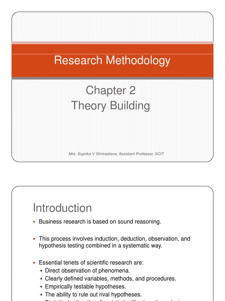 Business research is based on sound reasoning. This process involves induction, deduction, observation, and hypothesis testing combined in a systematic way. Essential tenets of scientific research are: Direct observation of phenomena. Clearly defined variables, methods, and procedures. Empirically testable hypotheses. The ability to rule out rival hypotheses hypotheses. Statistical rather than linguistic justification of conclusions. The self-correcting process.
