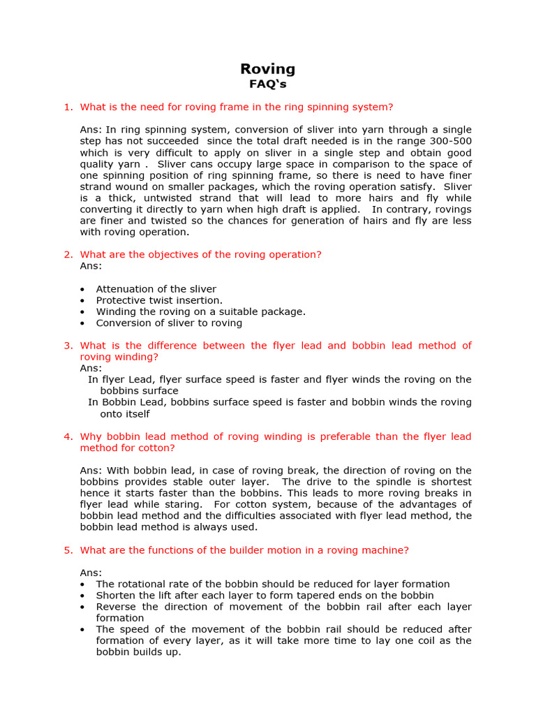 4. Why bobbin lead method of roving winding is preferable than the flyer lead