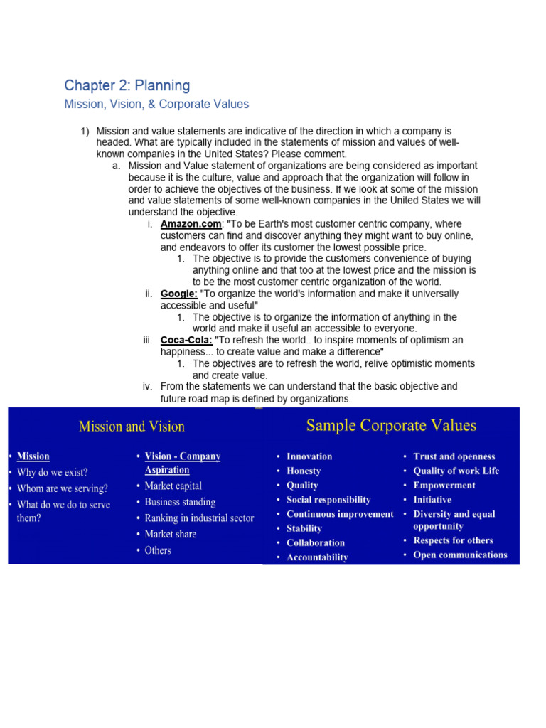 c. Value system (not asked for): five or six specific corporate values emphasized by the