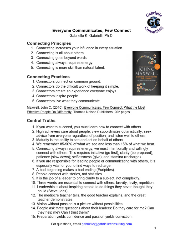 Maxwell, John C. (2010). Everyone Communicates, Few Connect: What the Most