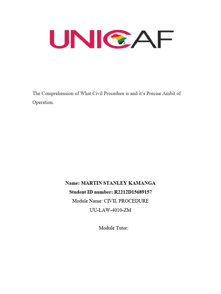 The Comprehension of What Civil Procedure is and it’s Precise Ambit of
