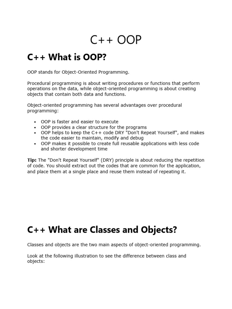• OOP helps to keep the C++ code DRY "Don't Repeat Yourself", and makes