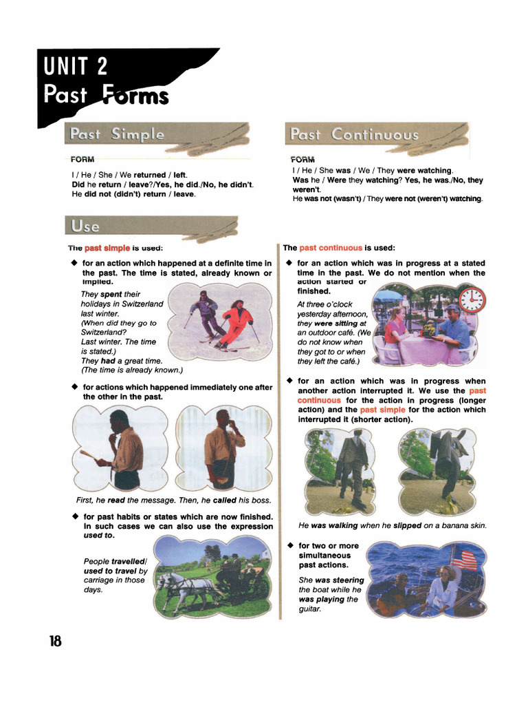 action) and the past simple for the action which.