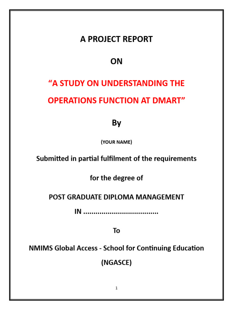 A Study On Understanding The Operations Function at Dmart