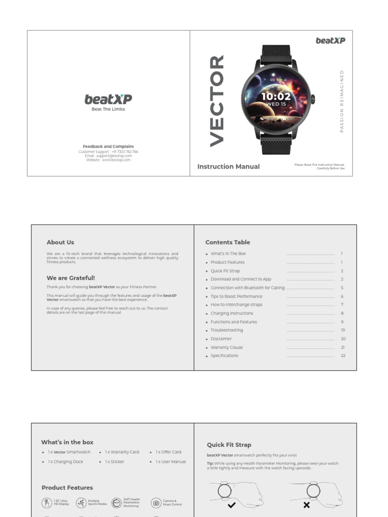 Thank you for choosing beatXP Vector as your Fitness Partner. Connection with Bluetooth for Calling .......................................................... 5