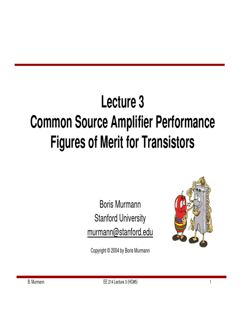 B. Murmann EE 214 Lecture 3 (HO#5) 1
