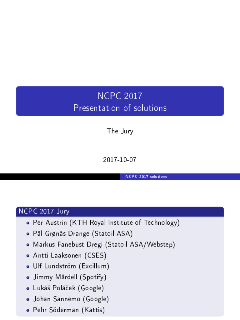 Problem Author: Johan Sannemo NCPC 2017 solutions