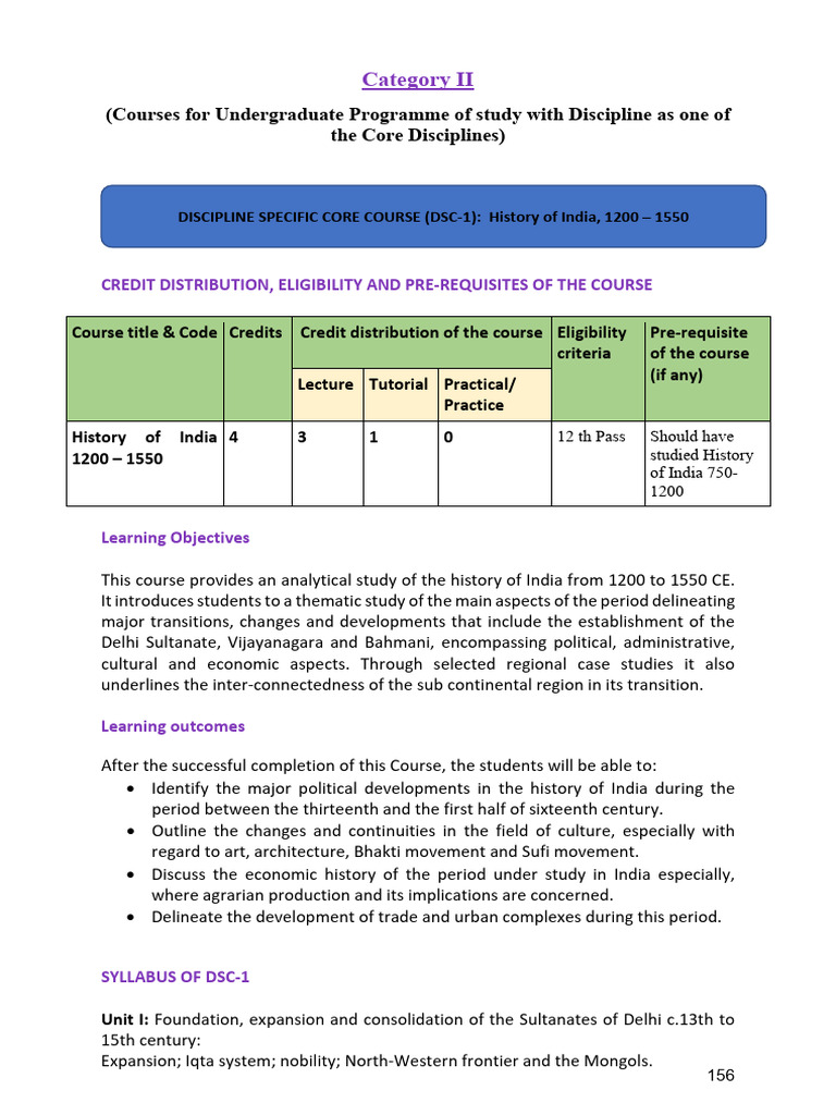 DISCIPLINE SPECIFIC CORE COURSE (DSC-1): History of India, 1200 – 1550