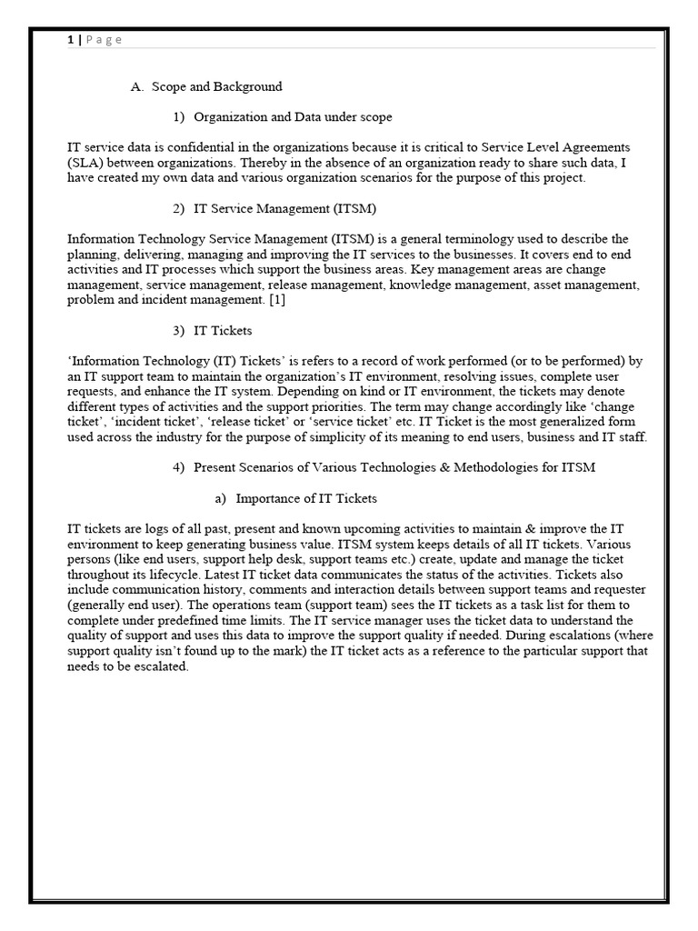 environment to keep generating business value. ITSM system keeps details of all IT tickets. Various