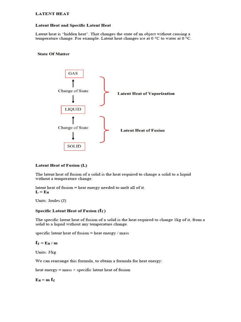 Latent heat is “hidden heat”. That changes the state of an object without causing a