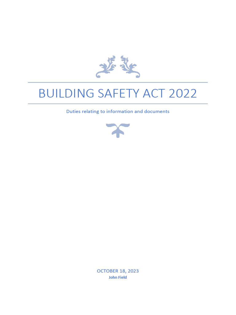 BUILDING SAFETY ACT 2022 Du�es rela�ng to informa�on and documents