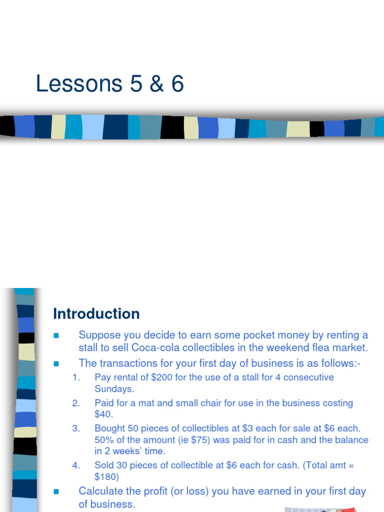 4. Sold 30 pieces of collectible at $6 each for cash. (Total amt =