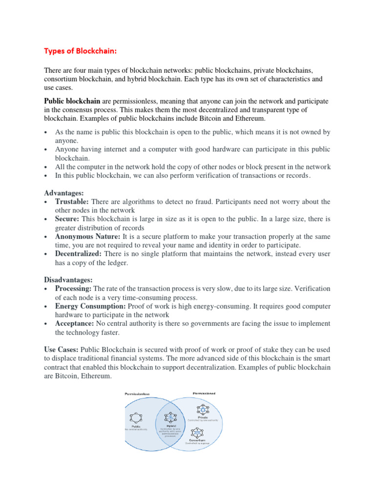 consortium blockchain, and hybrid blockchain. Each type has its own set of characteristics and