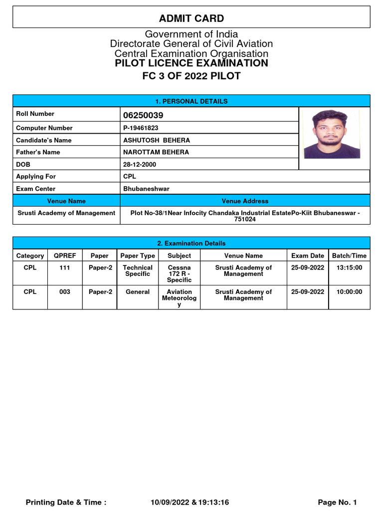 8. This admit card shall be used by the candidate only for the purpose of appearing In Pilot Licence Examination