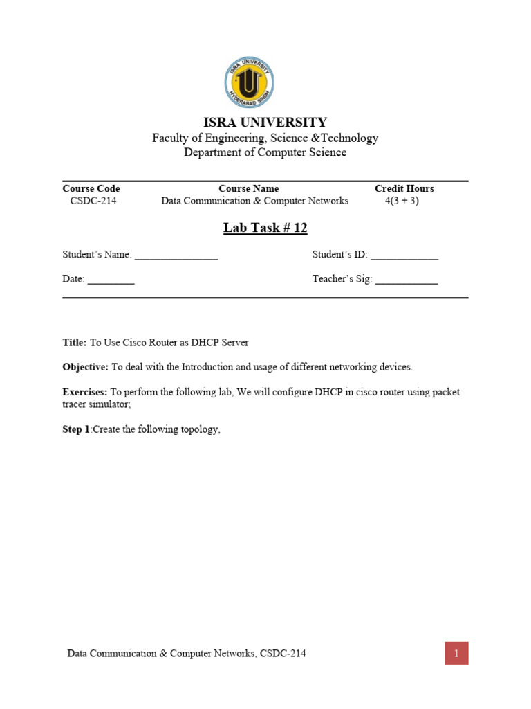 Exercises: To perform the following lab, We will configure DHCP in cisco router using packet