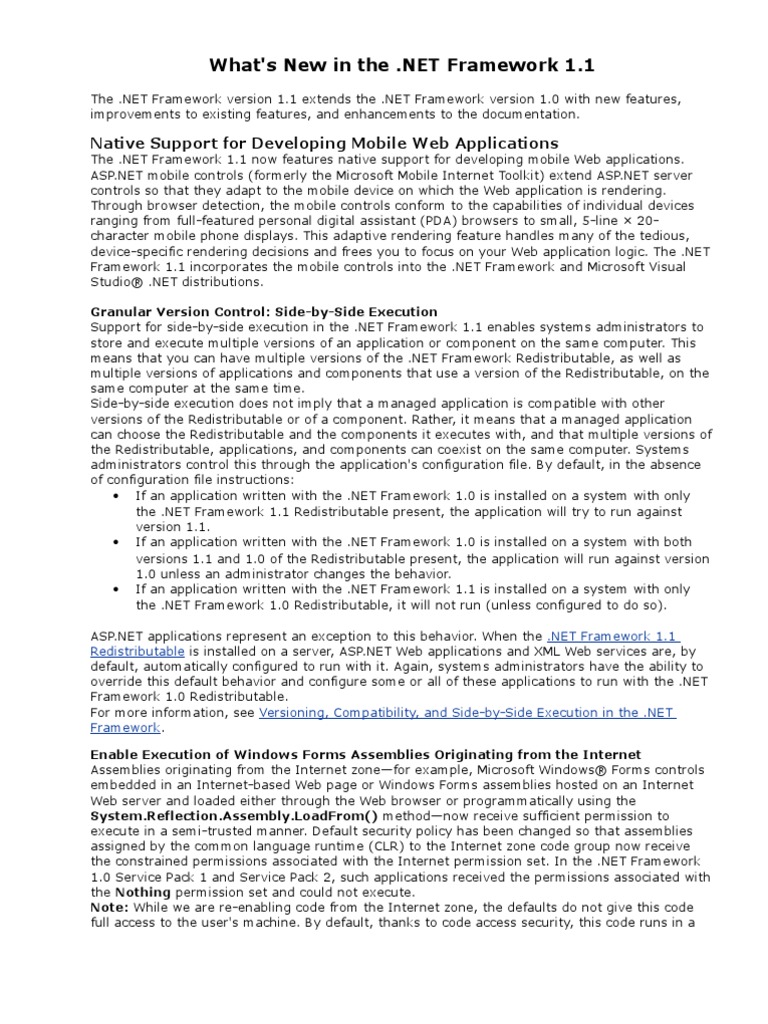 The .NET Framework version 1.1 extends the .NET Framework version 1.0 with new features,