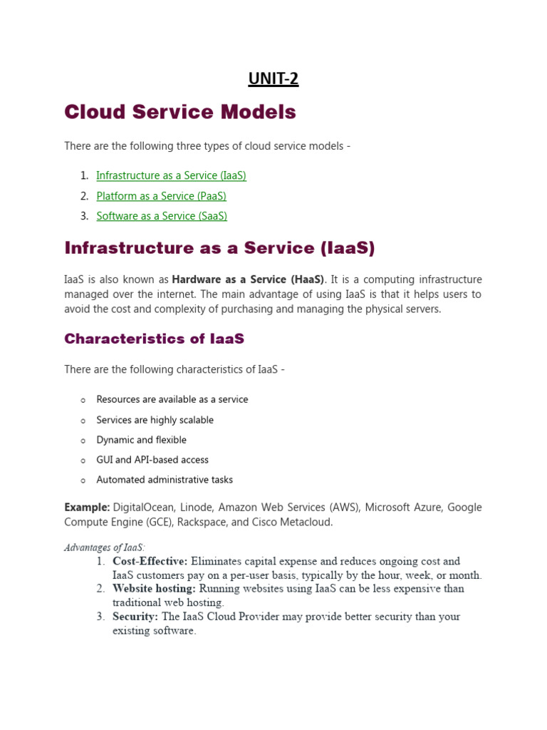 managed over the internet. The main advantage of using IaaS is that it helps users to