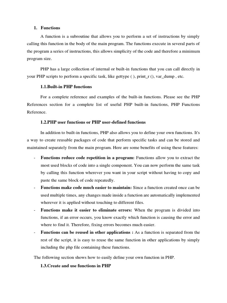 References section for a complete list of useful PHP built-in functions, PHP Functions