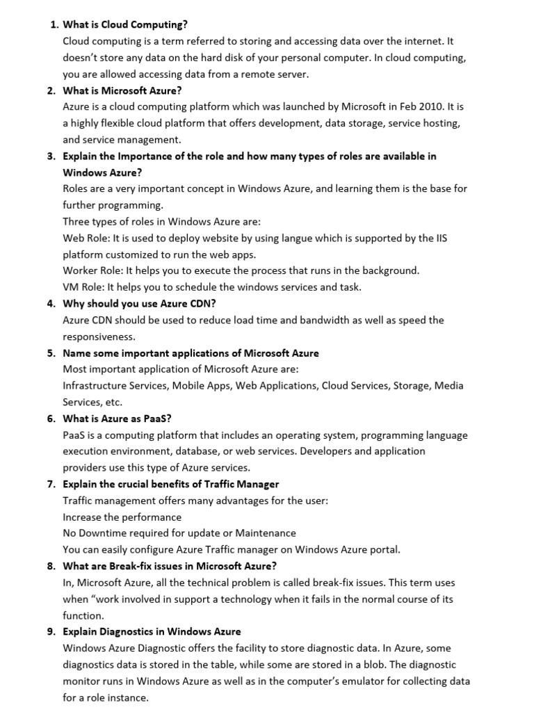 Azure is a cloud computing platform which was launched by Microsoft in Feb 2010. It is