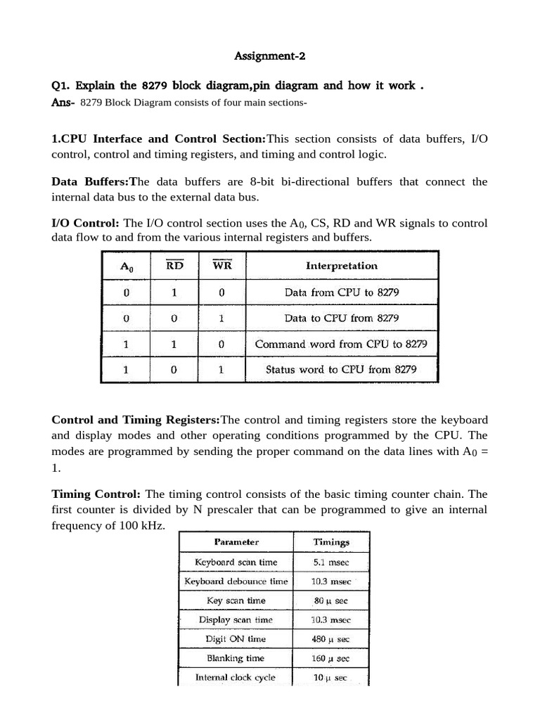Q1. Explain the 8279 block diagram,pin diagram and how it work .