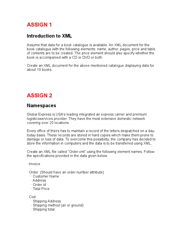 2. Create an XML file that represents this data. Use some sample data. Make