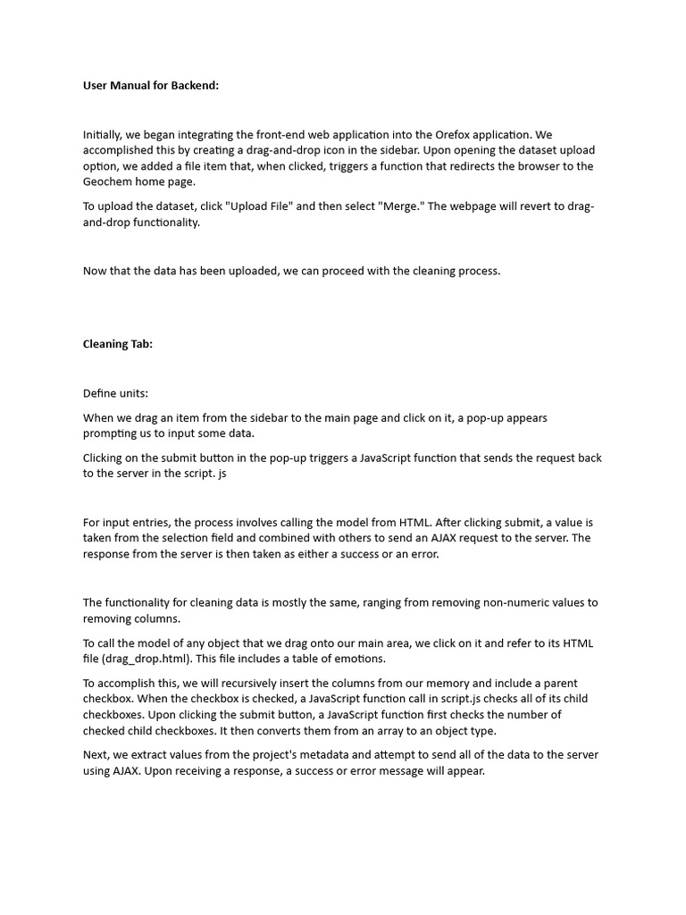 well as the implementation of report cleaning and analysis report functionality as well how it is