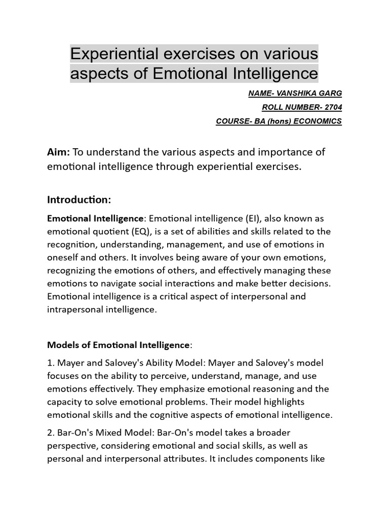 Emotional Intelligence: Emotional intelligence (EI), also known as