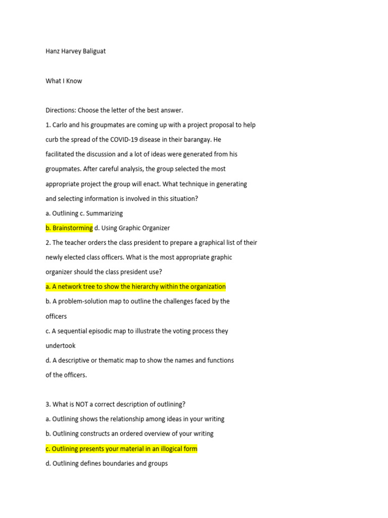 ACTIVITY 2. Outlining and Using Graphic Organizers