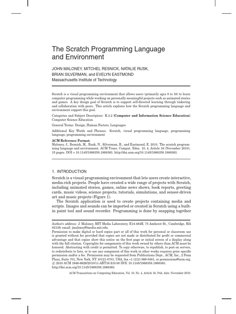 ming language and environment. ACM Trans. Comput. Educ. 10, 4, Article 16 (November 2010),