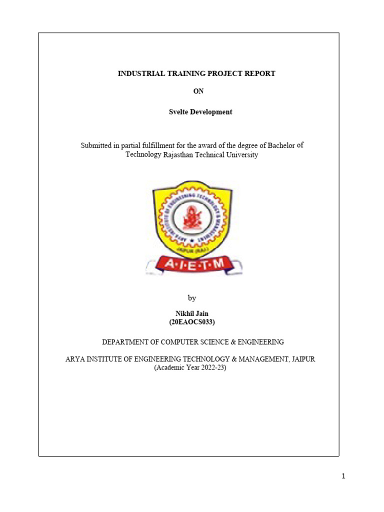 I hereby declare that the Industrial Training project report entitled “Svelte Development” was