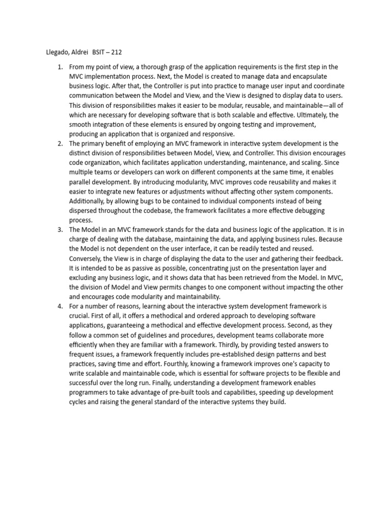 2. The primary benefit of employing an MVC framework in interactive system development is the