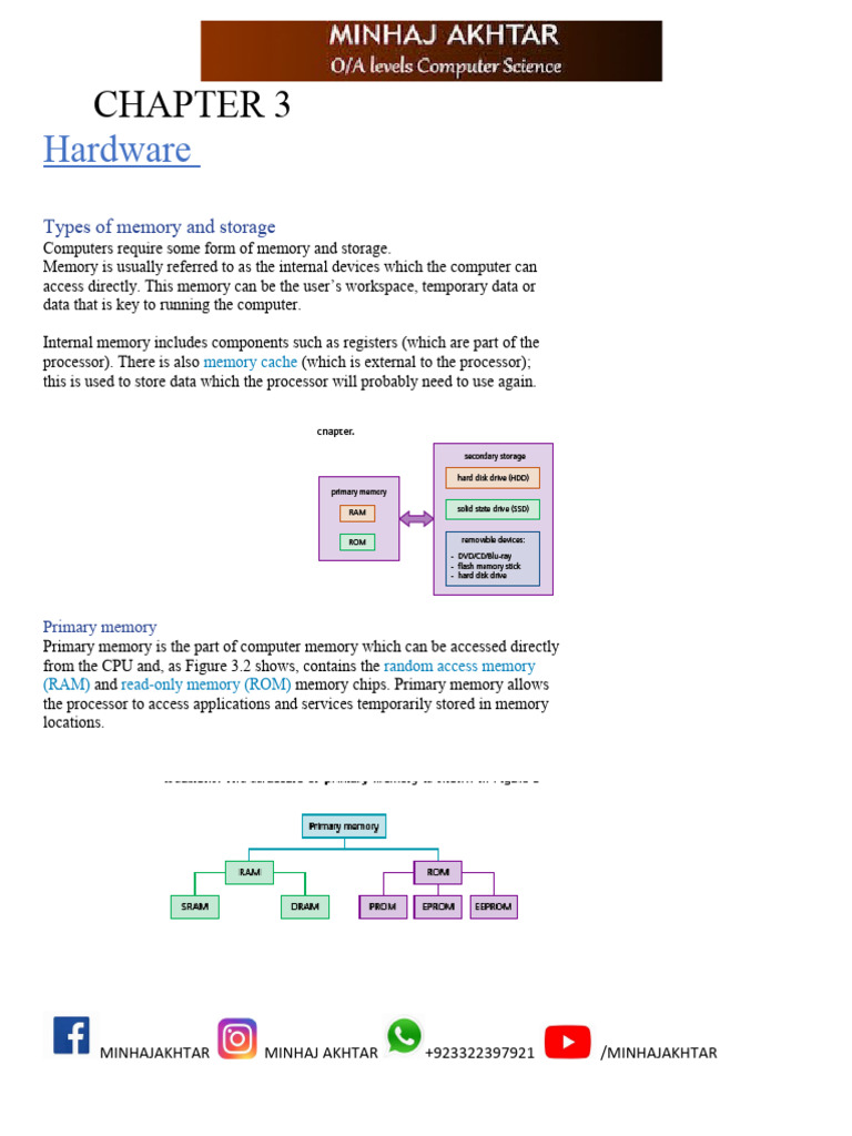 (RAM) and read-only memory (ROM) memory chips. Primary memory allows