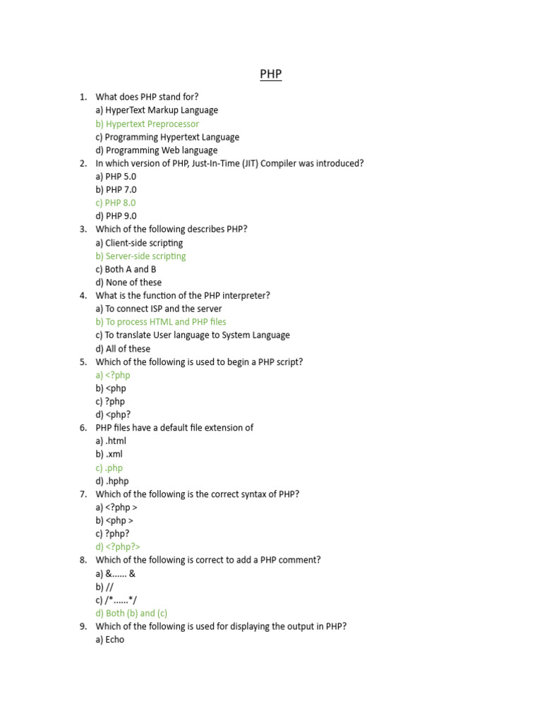16. Which of the following is the correct use of the strcmp () function in PHP?