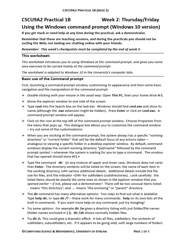 This worksheet introduces you to using Windows at the command prompt, and gives you some