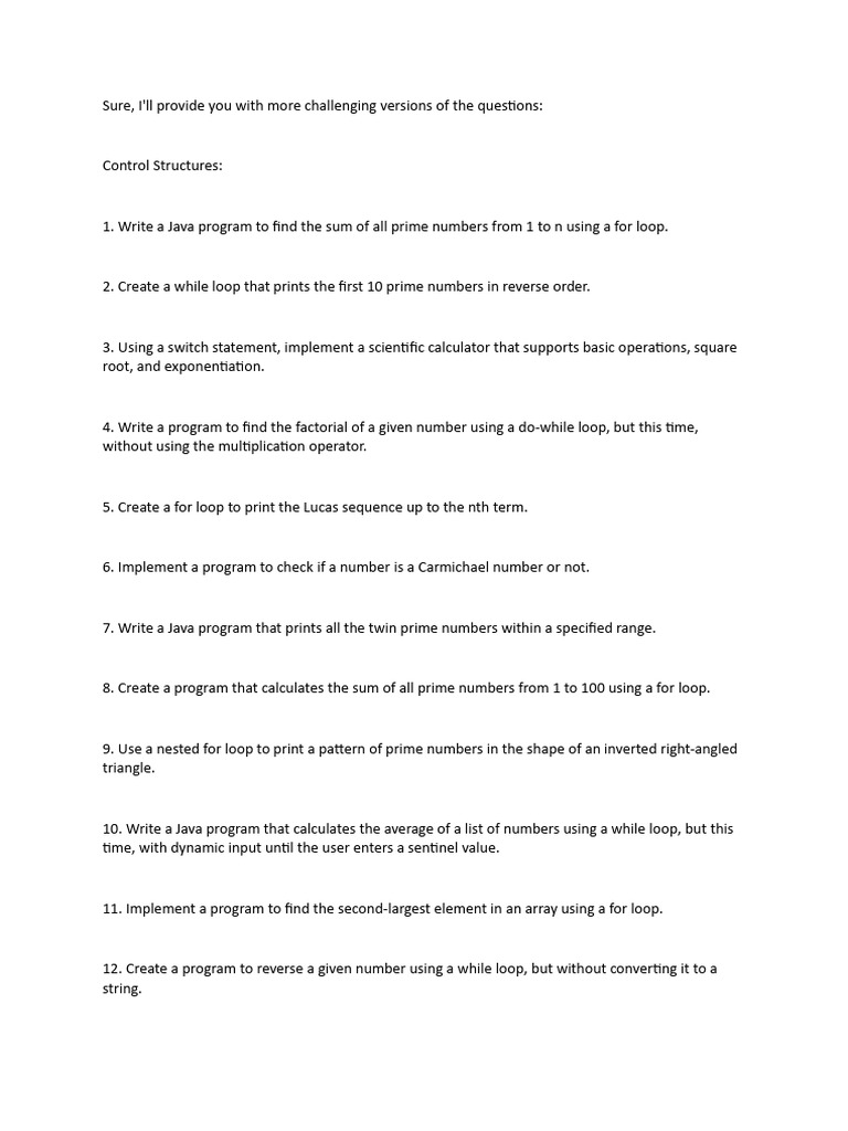 1. Write a Java program to find the sum of all prime numbers from 1 to n using a for loop.