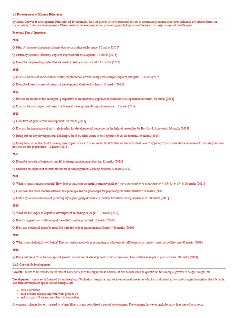Syllabus: Growth & development; Principles of development, Role of genetic & environmental factors in determining human behaviour;Influence of cultural factors in