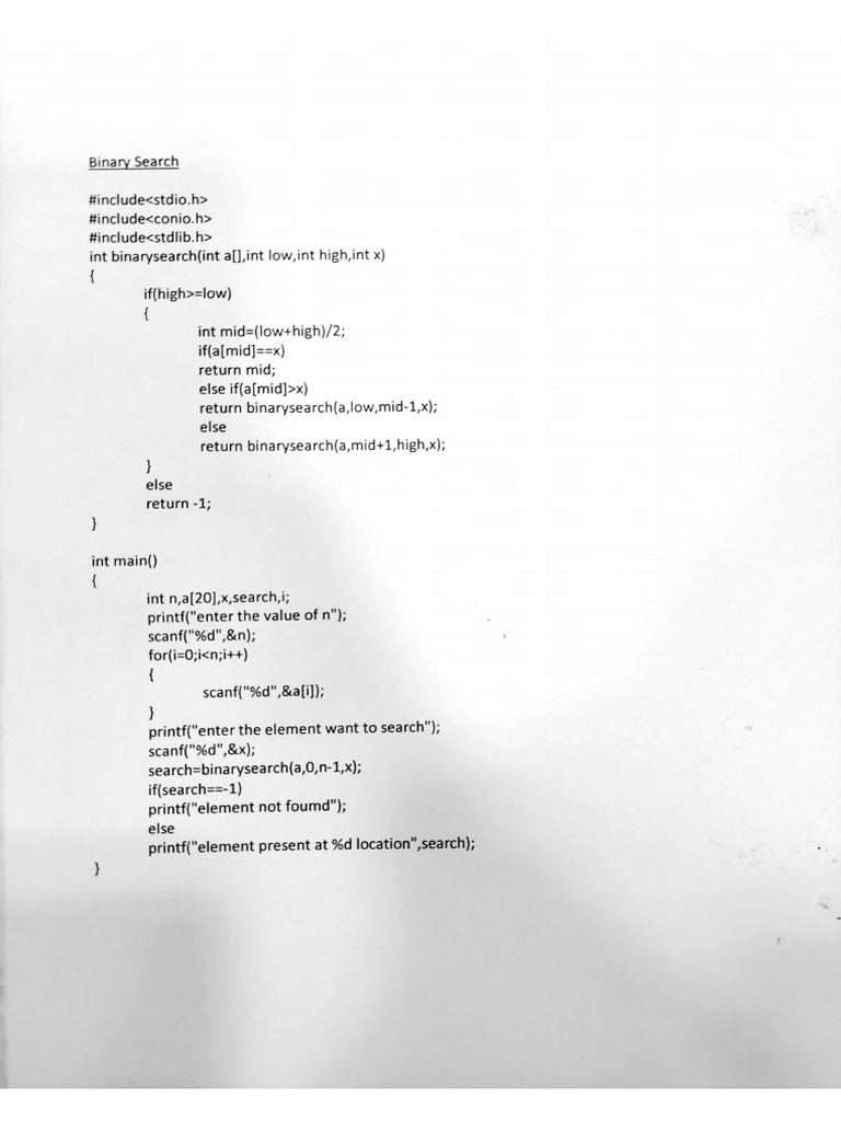 01.binary Search Program For C Program in C