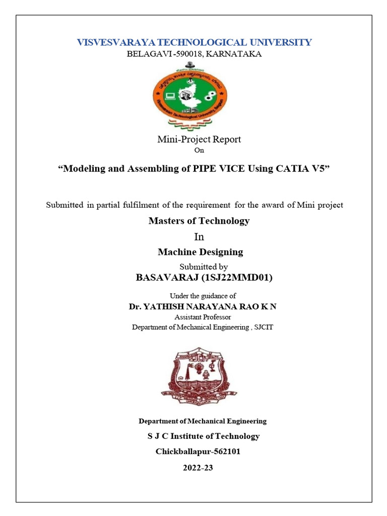This is to certify the mini project entitled “Modeling and Assembling of PIPE