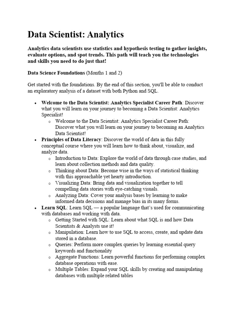 in the Data Scientist: Analytics Specialist Career Path and explore ways to
